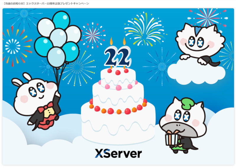 どうやら「エックスサーバー22周年記念プレゼントキャンペーン」で応募したのが当選したみたいでした!